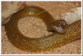 Lượng nọc tiết ra trong 1 lần bị rắn Taipan cắn có thể cướp đi sinh mạng của 100 người hoặc một “đội quân 250.000 con chuột thí nghiệm”. Những nạn nhân bị loài rắn này cắn sẽ tử vong trong vòng 45 phút. Rất may là rắn Taipan vốn rất nhút nhát và sợ con người, nó chỉ dùng nọc độc để tấn công trong những trường hợp bắt buộc phải tự vệ mà thôi.